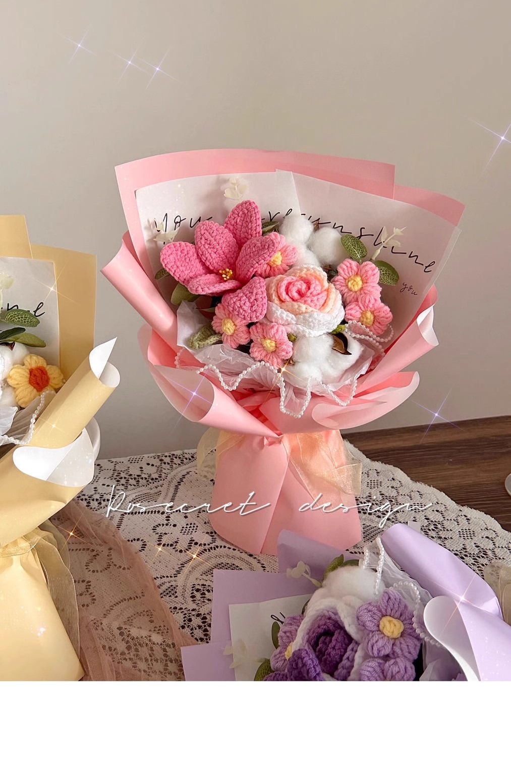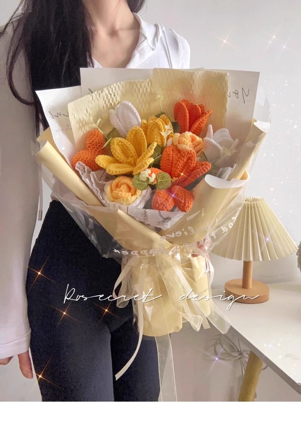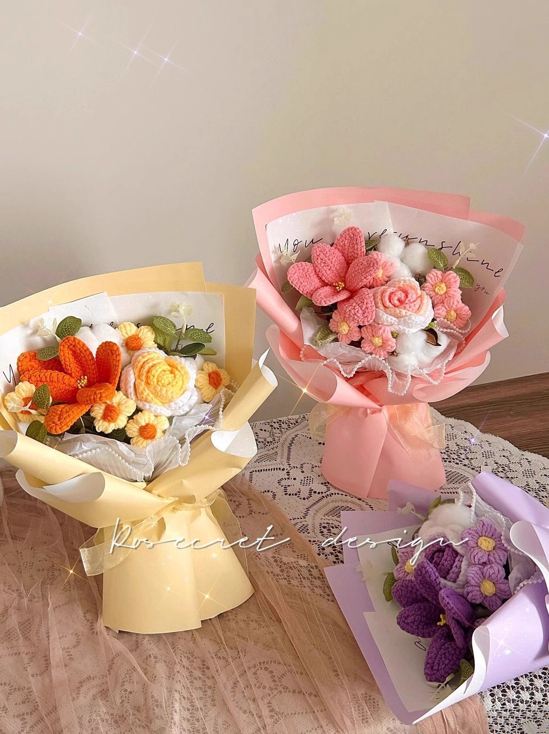 Meticulously handcrafted wool flowers with fine knitted details, creating a premium and heartfelt alternative to traditional bouquets.