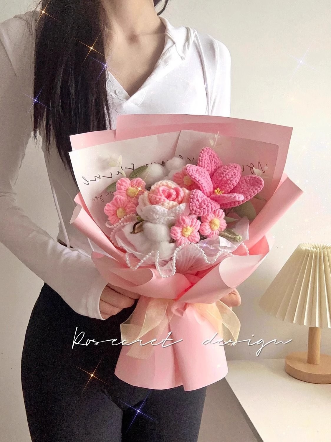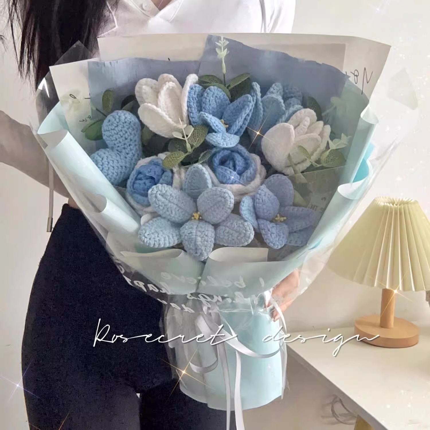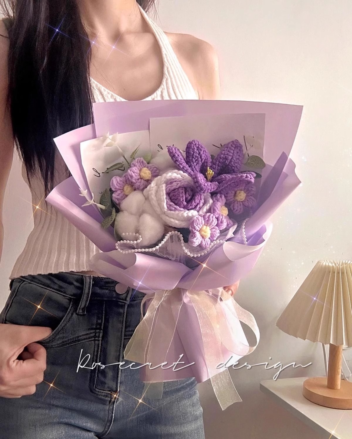 Meticulously handcrafted wool flowers with fine knitted details, creating a premium and heartfelt alternative to traditional bouquets.