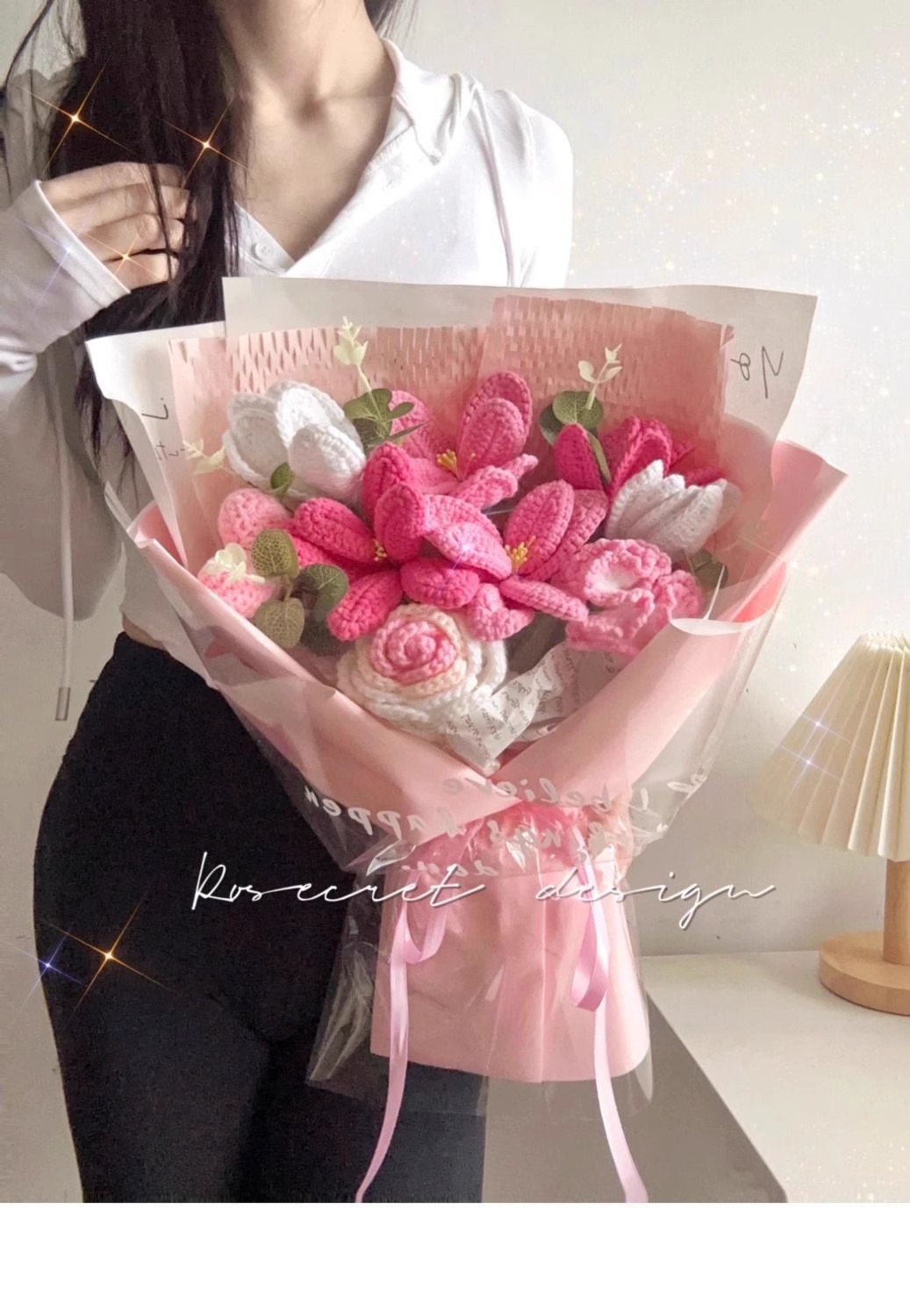 • Components: Knitted flowers, gift bag, LED light, greeting card